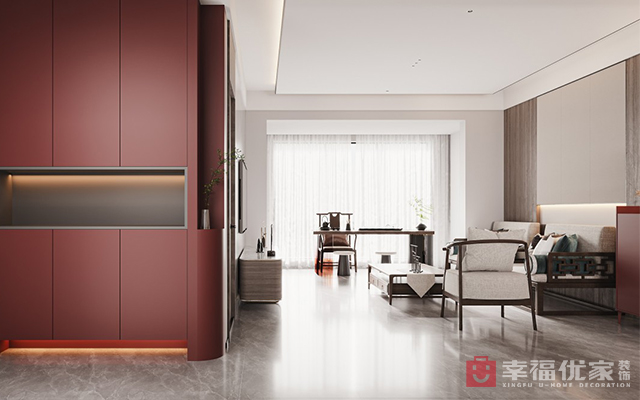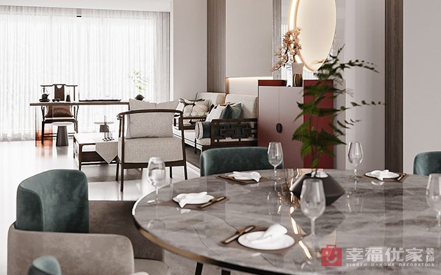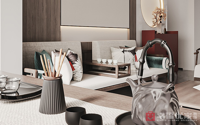 客厅大幅纹理的石材引人注目,金属体块穿插、构成关系于此自由表达,多种材质、肌理的碰撞配比,让层次更加鲜明,既打破沉闷、单调,又在一开场便勾勒出大气的东方韵味。布艺材质在山石之前显得舒适而温婉、加以精巧绝美的饰品轻微点缀,让空间在质朴雅致的氛围中与当代空间气质相吻合,调和温燥,一切刚好。