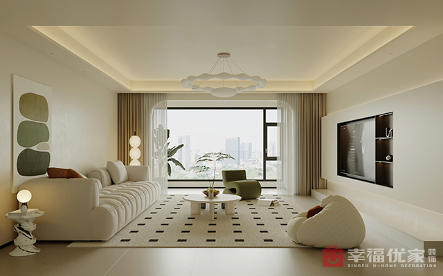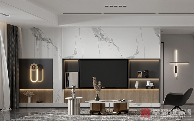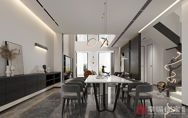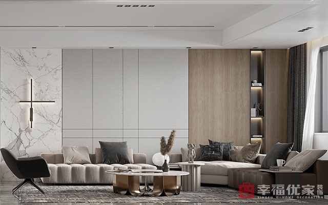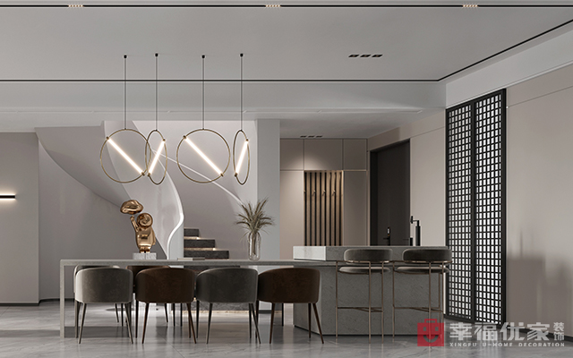 设计师选用灰色塑造空间,奠定简洁纯粹的空间氛围。空间之中没有过多的矫饰,展现出现代极简主义下的写意美感,将寂静与安宁贯穿整个项目。客厅中,设计师选用大面积的灰色奠定整体的简约基调,一旁的落地窗引入了充足的光线让客厅显得明亮又宽敞,浅灰色的布艺沙发搭配上造型简洁的圆形木色茶几,和谐的混搭各具特色,线条感十足的落地灯,丰富了空间的细节。