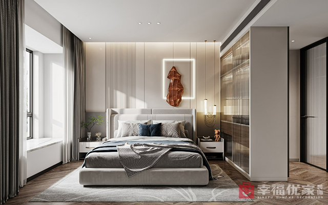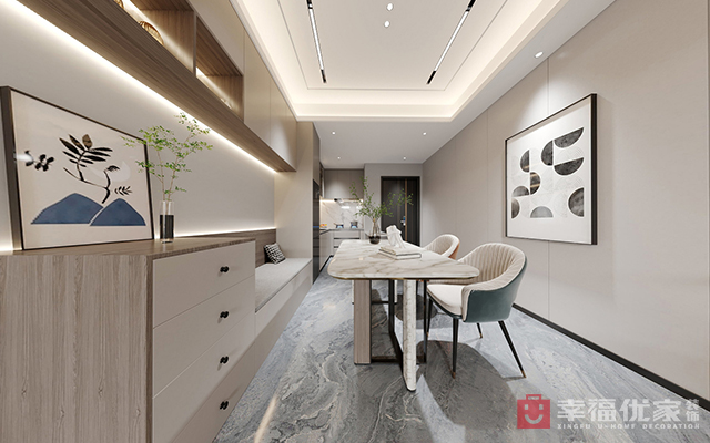 现代风格是一种以简洁、清晰和功能为特性的装修风格。该户型保留原有的套三户型结构。用简介的线条明亮的颜色和开放的空间布局来达到业主喜欢的视觉效果。此方案效果满足小两口对以后幸福生活的美好期盼|