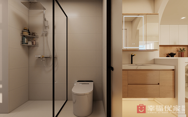 两人一狗,客户是一对新人夫妻,也是客户的婚房。房屋的改动主要体现在厨房,卫生间。把原本的封闭式厨房做成了入户开放式;卫生间也做成了干湿双分离加单独的浴缸区,把生活阳台纳入到卫生间,增加卫生间的面积放下浴缸,还有独立的宠物厕所,因为有烘干机的存在,就可以取消生活阳台。
