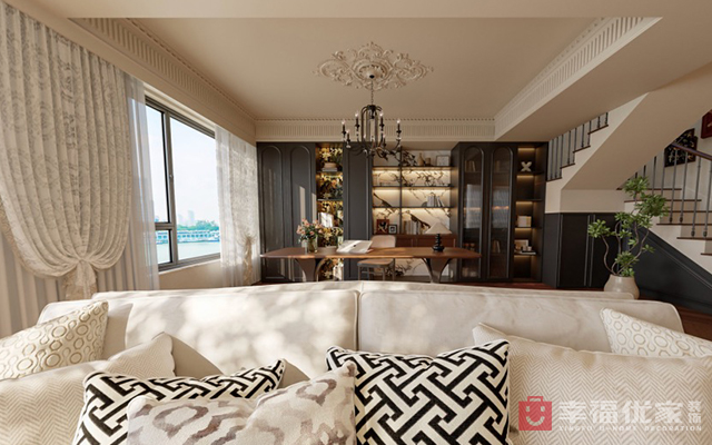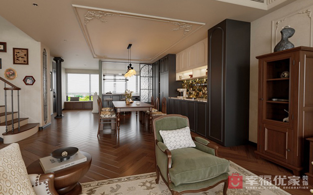 美式复古跃层,仿佛踏入了时光的缝隙,每一步都踩在岁月的柔软里。复古的木质地板,带着岁月的痕迹,却在灯光下泛着温暖的光泽,诉说着过往的故事。墙壁上挂着的复古画作,与精致的雕花装饰相得益彰,每一处细节都像是精心雕琢的艺术品,诉说着美式复古独有的浪漫与优雅。每一处空间都像是一个故事的章节,串联起生活的美好与温暖。它不仅仅是一个住所,更是一个可以让人沉醉其中的时光容器,承载着过去的回忆,也期待着未来的每一个瞬间。