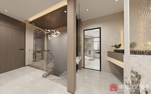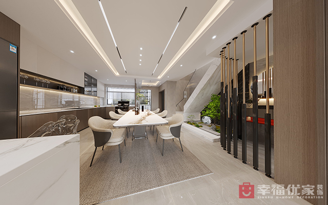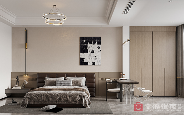 明亮开阔的厨房,增加空庭的开阔性,楼梯间没有自然光源休息室做了玻璃采光墙,增加楼梯间的自然光。卧室阳台有结构上翻梁做了榻榻米的衣帽间设计。低调而内敛的生活品质。同时温馨的墙面艺术漆高贵又不失奢华体现出业主对审美的品味。