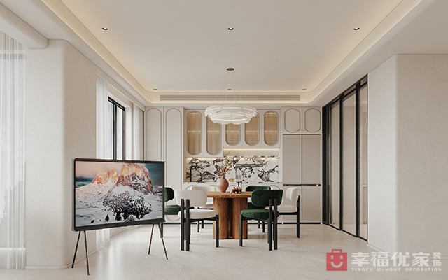 以浅米、柔白为基调,融现代法式线条于空间,凸显高级质感;双床儿童房用浅灰床具配法式雕花元素,兼顾童趣与精致,适配年轻家庭审美。